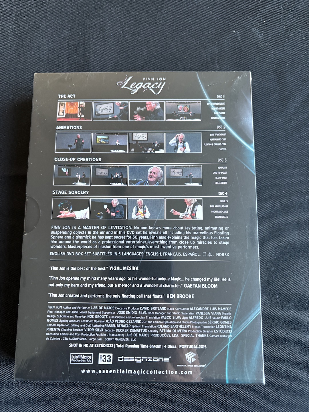 In this four disc DVD set you will learn the system kept secret for 50 years. Learn Finn's original concepts, routines and methods, including his 100% original method for levitation anytime, anywhere. Inventor of the elastic loops and a true magic legend whose professional act in now available for you to learn and study.